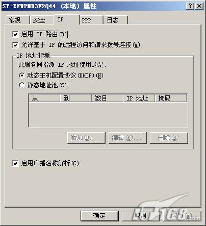 第四步:我们把动态域名放在这里来说。因为一般企业接入互联网应该有固定IP,这样客户机便可随时随地对服务端进行访问;而如果你是家庭用户采用的ADSL宽带接入的话,那一般都是每次上网地址都不一样的动态IP,所以需在VPN服务器上安装动态域名解析软件,才能让客户端在网络中找到服务端并随时可以拨入。笔者常用的动态域名解析软件为:花生壳,可以在www.oray.net下载,其安装及注意事项请参阅相关资料,这里不再详述第三步:到这里还没完,以上两步只是开启了VPN服务,还要经过必要的设置才能符合我们的实际使用环境。设置一为关于IP地址的问题,右击右边树形目录里的本地服务器名,选择“属性”并切换到IP选项卡(如下图所示)。这里要说的是:如果你的internet拉入方式为宽带路由接入即DHCP方式,那就不需要改,不过根据笔者的经验,采用DHCP动态IP的网络速度相对较慢;而使用静态IP可减少IP地址解析时间,提升网络速度,其起始IP地址和结束IP地址的设置可以依据你所在地区的IP地址段,也可自行定义,比如常见的局域网段“192.168.0.X”。