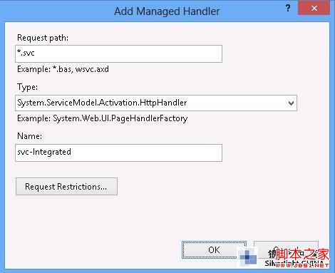 最近在做Silverlight,Windows Phone应用移植到Windows 8平台,在IIS8中测试一些传统WCF服务应用,发现IIS8不支持WCF服务svc请求,后来发现IIS8缺少对WCF服务的Managed Handler,按照以下步骤添加后,IIS8即支持WCF服务。