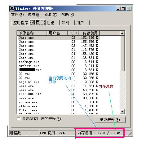 举例,以上图为例:总共内存为8G(7994M) ,实际开了平常在用的大型软件后,使用率为7175M,就是7G,