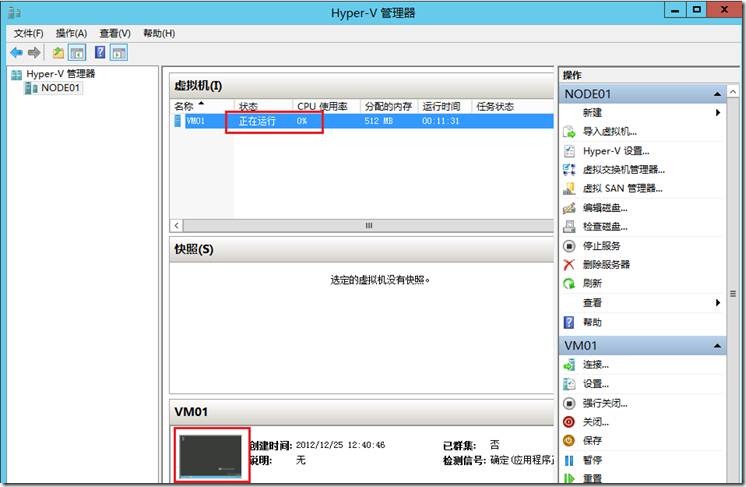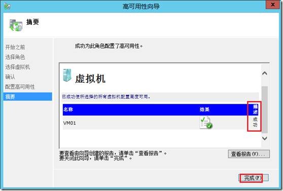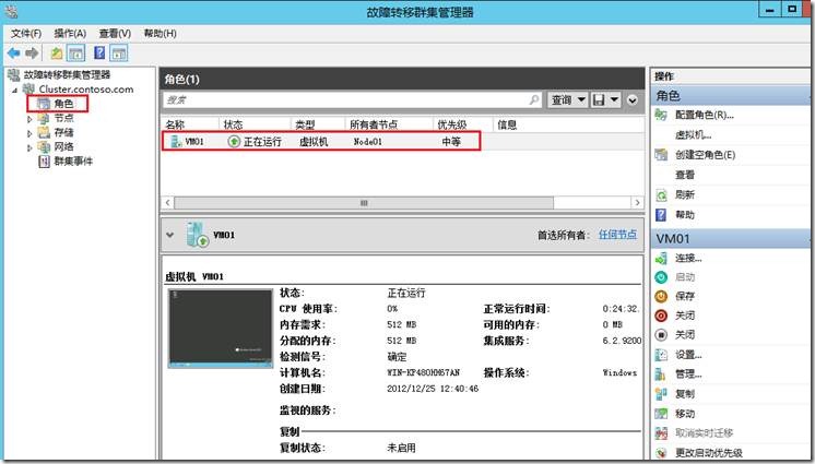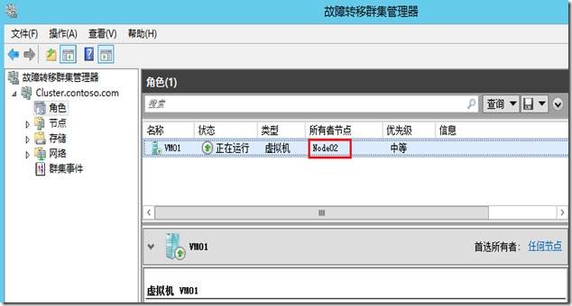 配置完成后在群集管理器的角色中可以看到虚机VM01,没有启用高可用时是不会显示在角色里面。