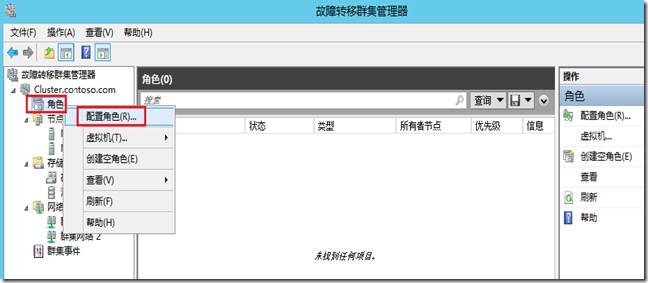 在群集管理器中,右键单击“角色”,点击“配置角色”