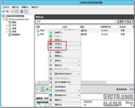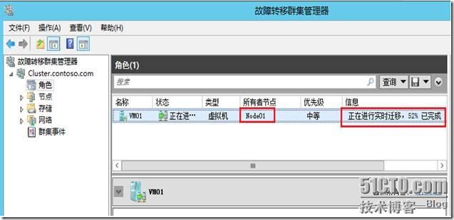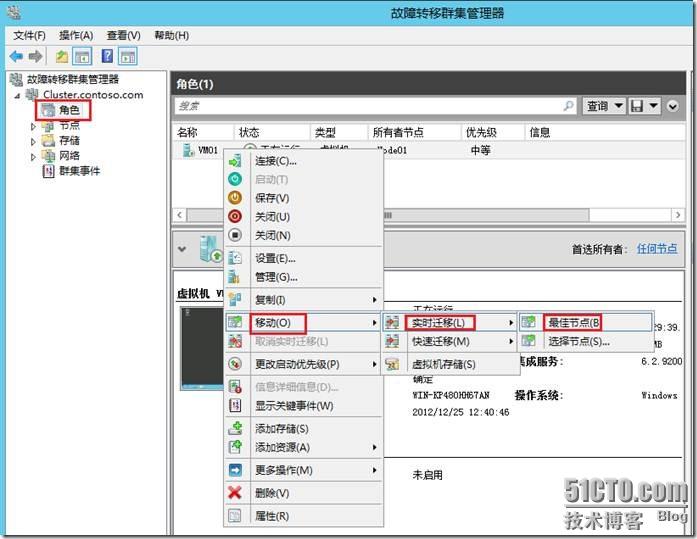 在群集管理器中,右键单击VM01虚机,点击移动—实时迁移—最佳节点