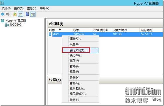 题外话:在2008 R2的Hyper-V中的强制关闭虚机按钮为“关机”,很容易混淆,到2012中已经翻译成了“强制关闭”,好理解多了。