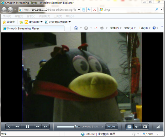 http://192.168.1.104/SmoothStreamingPlayer.html,就可以看到实时广播节目了。
