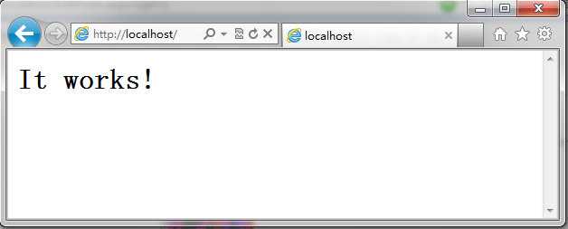 安装完成之后,在浏览器输入http://localhost,如果显示It Works!,表示Apache安装成功。
