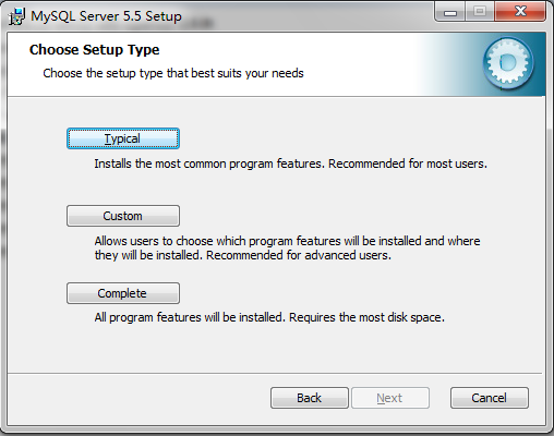 安装MySQL:双击安装,如果需要更改安装目录,则在Choose Setup Type选择Custom