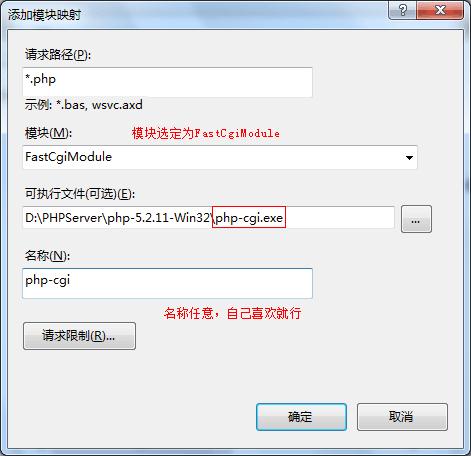 上图引用自网络,把可执行文件位置替换成D:\service\php\php-cgi.exe即可.