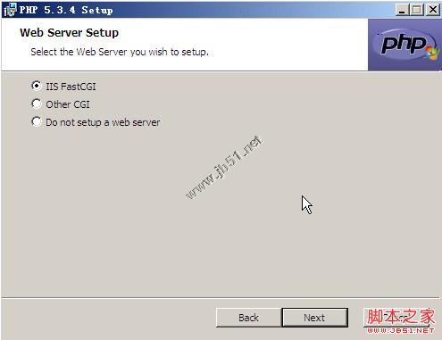 下载好后,打开安装程序,经过引导,配置好路径,来到选择“web server setup”的地方,在这里我们选择“IIS fastcgi”(图9)