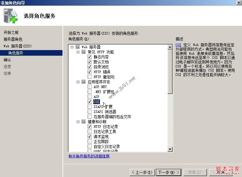 点击“下一步”之后,需要选择功能,这里需要比默认选项多增加一个“cgi”(图3)