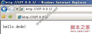 结束此步骤后,就可以访问本地地址“http://127.0.0.1”进行测试了,网页上显示出了“hello dede”,说明配置成功。