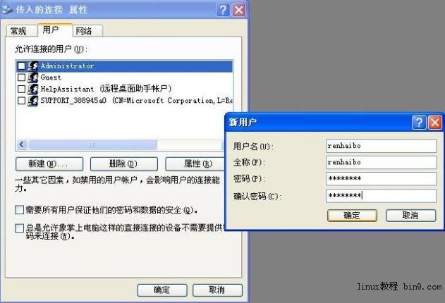 点击上面的“用户”选项卡,点击下面的“新建(N)…”建立一个用户名和密码并选中,也可以选中已有的用户名和密码,如图