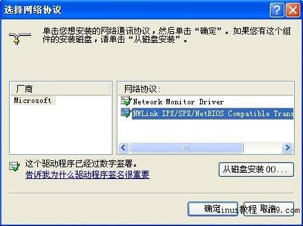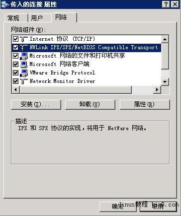 到“网络”选项卡中,点击“安装(I)…”→“协议”选择包含“IPX协议”那个,点击确定,如下图所示:
