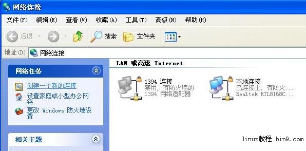 打开“网络连接”,单击左侧“网络任务”下的“创建一个新的连接”,如下图所示:
