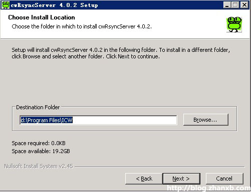 1、下载客户端安装包 http://www.jb51.net/softs/55934.html#down 截止本文档更新日期,最新版本是cwRsync_4.0.2_Installer