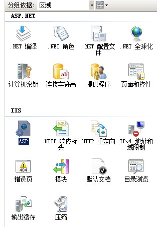 打开IIS后,选中你的网站站点,右边会出现对应的功能视图:点击网站图标后,然后在右边找到ASP。