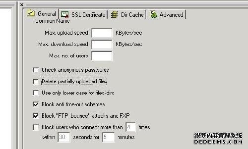 设置也很简单,不过我们这里还是要迎合大众胃口,说说关于serv-u的安全设置。