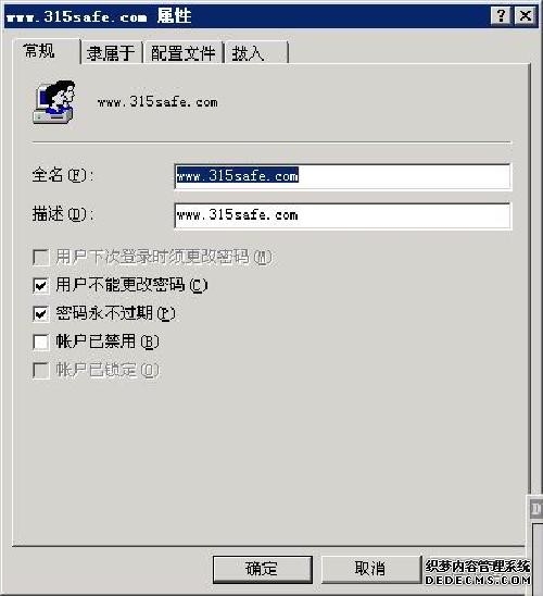 首先是每一个web站点使用单独的IIS用户,譬如这里,新建立了一个名为www.315safe.com ,权限为guest的。