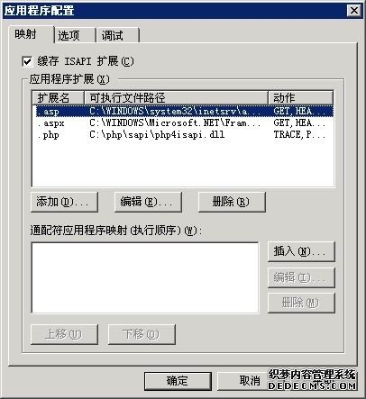 在"应用程序配置"里,我们给必要的几种脚本执行权限:ASP.ASPX,PHP,