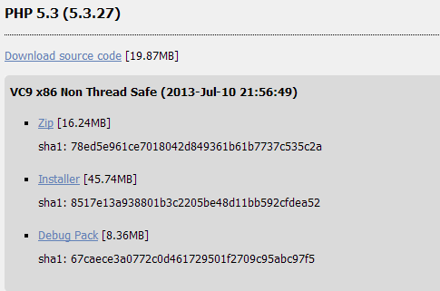 首先到http://windows.php.net/download/下载你需要的php版本,这里我下载的是php5.3。