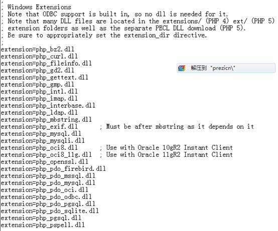 “extension=php_gd2.dll”“extension=php_mbstring.dll”“extension=php_mcrypt.dll”“extension=php_mysql.dll”“extension=php_pdo_mysql.dll”