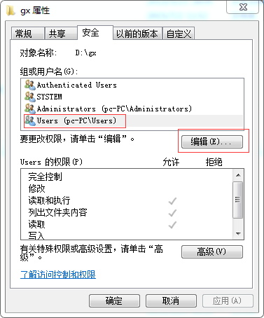 同时,为了进一步保护共享文件的安全,你还可以设置共享文件的访问权限,选中相应的用户,然后点击“编辑”,如下图所示: