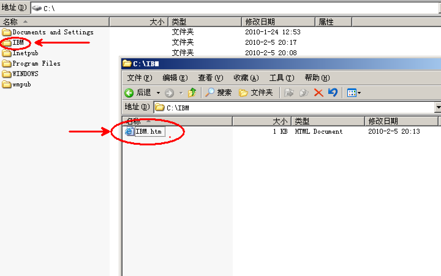 在文件夹内新建一个IBM.htm的文件