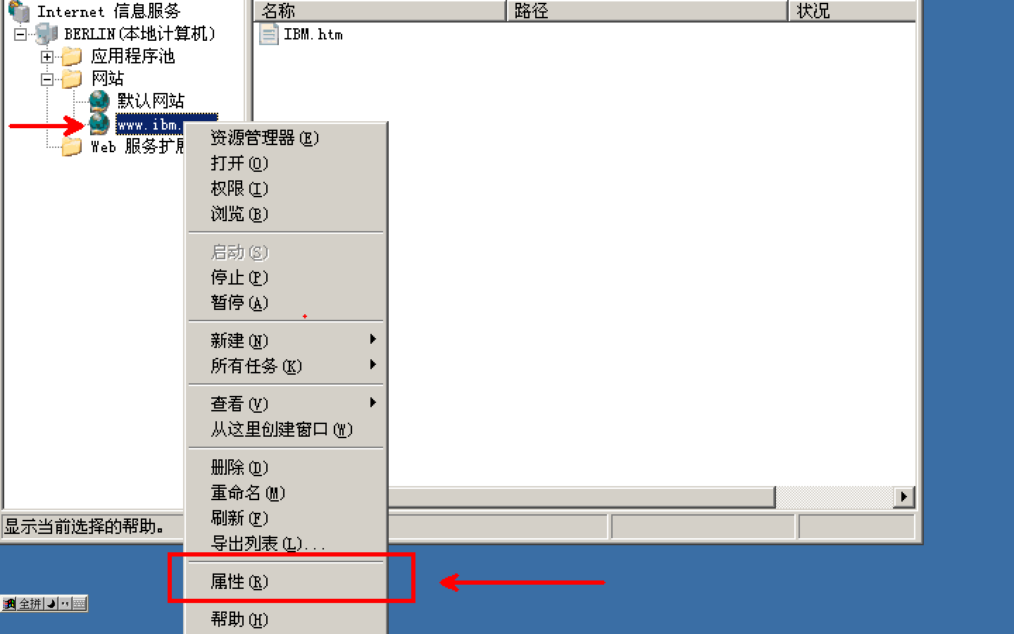 右击“www.ibm.com“-->属性