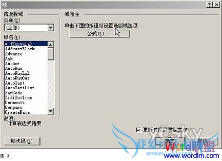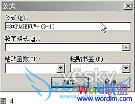 回到"页眉和页脚"视图中,在"插入"菜单中点"域"后弹出如图对话框(如图3),在"域名"中选中"=(Formula)"(如果列表中没有出现这个选项可以在"类别"下拉菜单中选中"全部"),然后点击右侧出现的"域属性"中的"公式"按钮,出现输入公式的对话框(如图4),在"公式"中输入"=3*PAGENUM-(3-1)",然后确定,这样我们就为第一个栏输入了页码。用同样的方法为第二栏、第三栏分别输入"=3*PAGENUM-(3-2)"、"=3*PAGENUM-(3-3)"的公式,把它们用空格键或Tab键分割后调整到合适的位置(如图5),这样我们的工作就完成了,所有的Word页面在页脚中都插入了以栏为单位的"页码",而且在不同的Word页面中自动变化。有兴趣的读者可以点中这些"页码"、按右键菜单中的"切换域代码",你会发现这些域里面的公式就会以原始的形式展现在你的面前。