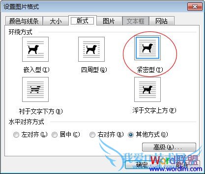 ④右键单击刚刚粘贴出来的图片,选择“设置图片格式”中的“版式”,然后将环绕方式设为“紧密型”确定。