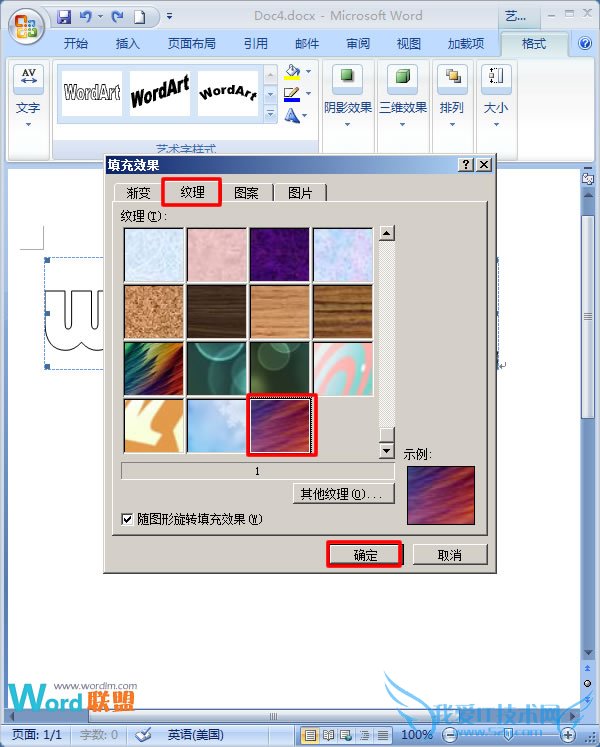 在Word2007中为艺术字设置纹理填充【Word2007教程】