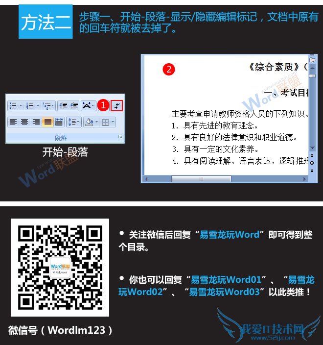 欢迎您访问我爱IT技术网,今天小编为你分享的电脑教程是office系列之word2007教程:【去掉Word2007文档中的回车符【Word2007教程】】,下面是详细的分享!