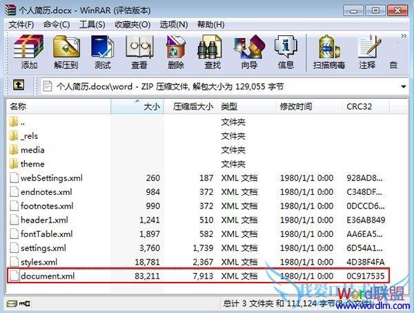 ④在document.xml文件中就可以浏览文字内容,media里面则是文档包含的图片。