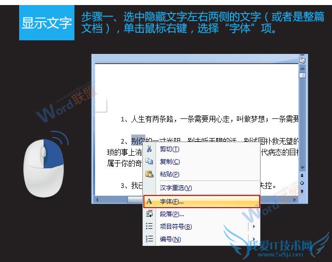 欢迎您访问我爱IT技术网,今天小编为你分享的电脑教程是office系列之word2007教程:【详解Word2007中如何隐藏和显示文字【Word2007教程】】,下面是详细的分享!