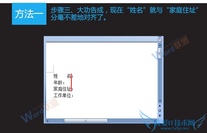 3、大功告成,现在“姓名”就与“家庭住址”分毫不差地对齐了。