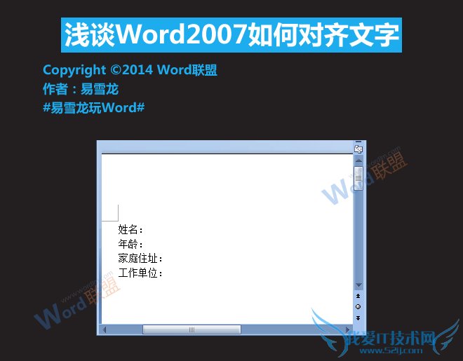 欢迎您访问我爱IT技术网,今天小编为你分享的电脑教程是office系列之word2007教程:【浅谈Word2007如何对齐文字【Word2007教程】】,下面是详细的分享!