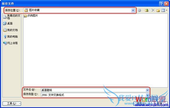 ②打开“保存文件”对话框,在对话框顶部的“保存位置”中选择图片文件的保存位置,然后在下方的“文件名”文本框中输入图片的名称,在“保存类型”中选择图片的格式;