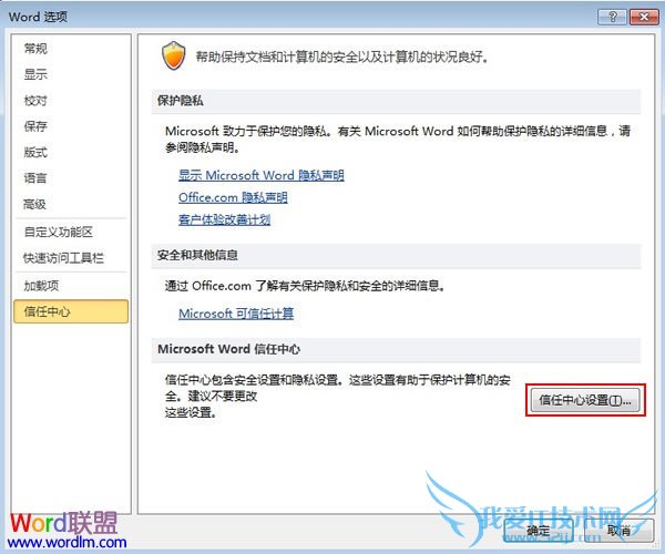 ④这样还不能解决的话,切换到信任中心,单击信任中心设置按钮。