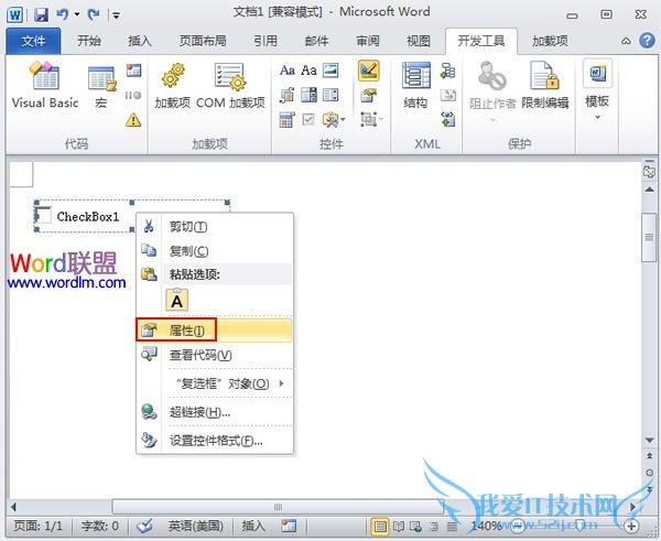 欢迎您访问我爱IT技术网,今天小编为你分享的电脑教程是office系列之word2010教程:【在Word2010中制作打钩控件框【Word2010教程】】,下面是详细的分享!