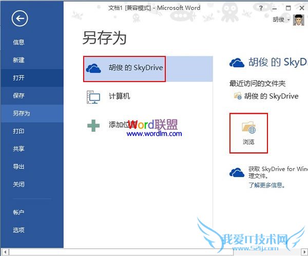 欢迎您访问我爱IT技术网,今天小编为你分享的电脑教程是office系列之word2013教程:【Word2013中将文档保存到SkyDrive云网盘【Word2013教程】】,下面是详细的分享!