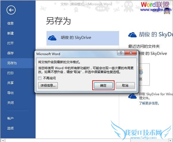 Word2013中将文档保存到SkyDrive云网盘【Word2013教程】