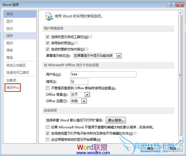 ③然后在Micrsoft Word信任中心里面单击信任中心设置按钮。