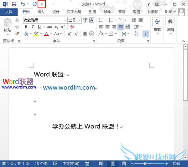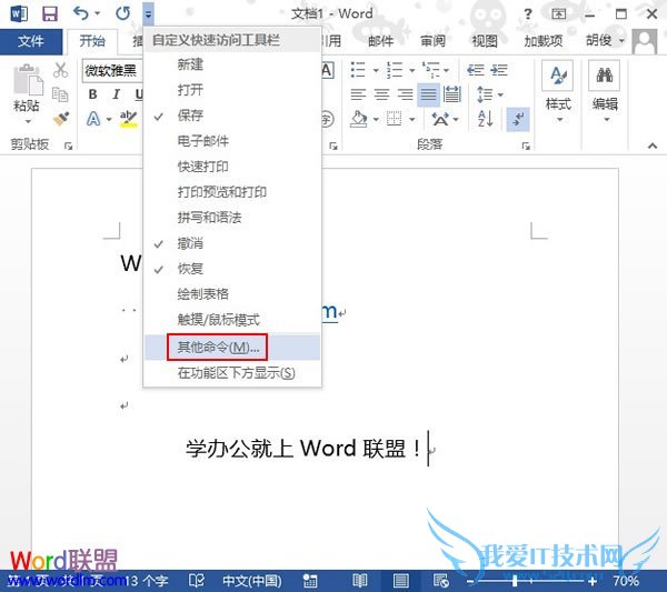 将常用操作快捷图标添加到Word2013中的快速启动栏【Word2013教程】