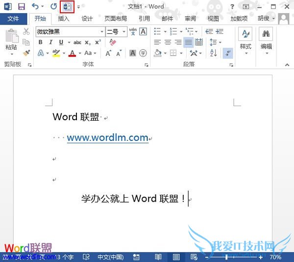 欢迎您访问我爱IT技术网,今天小编为你分享的电脑教程是office系列之word2013教程:【将常用操作快捷图标添加到Word2013中的快速启动栏【Word2013教程】】,下面是详细的分享!