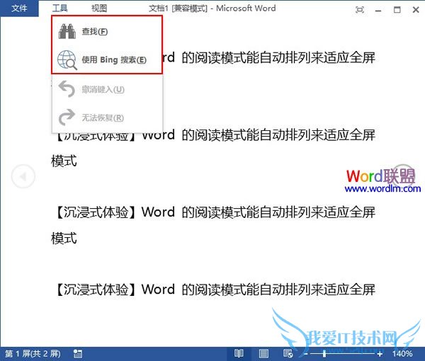 欢迎您访问我爱IT技术网,今天小编为你分享的电脑教程是office系列之word2013教程:【Word2013阅读模式的功能简述【Word2013教程】】,下面是详细的分享!