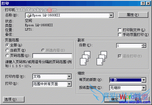 注意:选择每页纸打印二页文档时,打印的文档还是可以接受的,这样能够将纸张的消耗量降低一半儿左右,当每页纸打印4页文档时,文档的可读性下降很厉害。如果在每页纸上打印更多页的文档时,就只能大致看看文档的打印布局了。