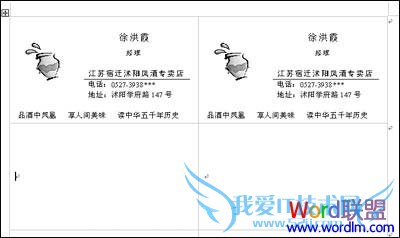 单击“确定”按钮后,即可以在第一个单元格中粘贴出第一张名片了。这张名片的位置大家可以看到并不需要进行设置(如图4所示)。注:可以进行手工拖拉式的放大缩小。