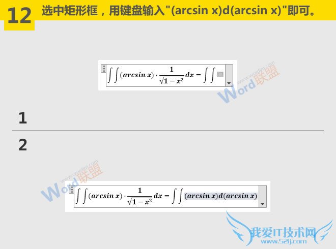 12、选中矩形框,对照公式用键盘在其中输入剩下的内容,这里是“(arcsin x)d(arcsin x)”。