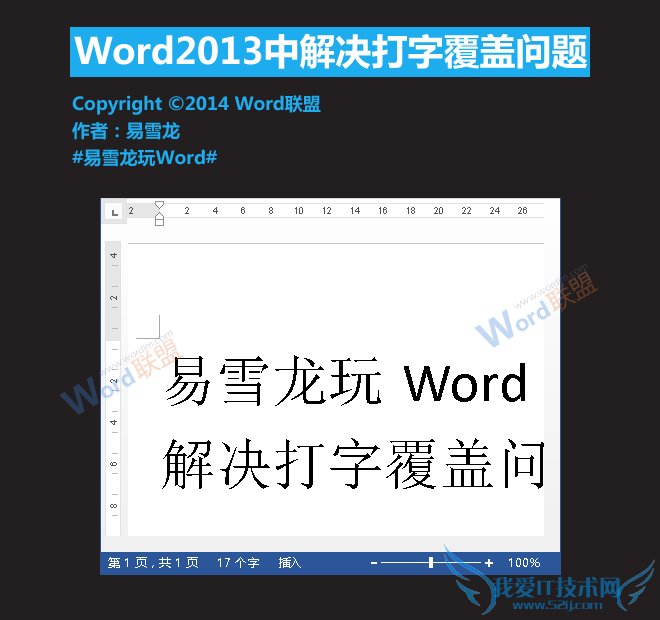 欢迎您访问我爱IT技术网,今天小编为你分享的电脑教程是office系列之word教程:【Word2013中解决打字覆盖问题[word学习]】,下面是详细的分享!