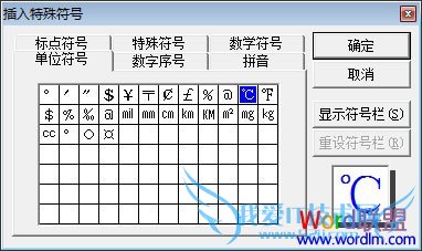 ②在“单位符号”中即可找到你想要的“摄氏度”符号了。