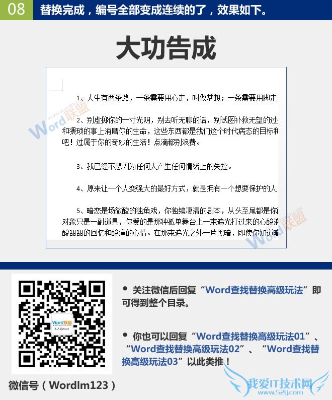 欢迎您访问我爱IT技术网,今天小编为你分享的电脑教程是office系列之word教程:【将不连续编号替换成连续编号:Word查找替换高级玩法(09)[word学习]】,下面是详细的分享!
